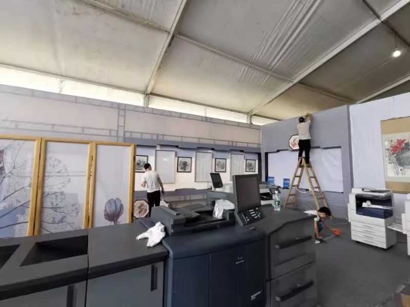 9月15日,布展工作正在進(jin)行最后的沖刺。