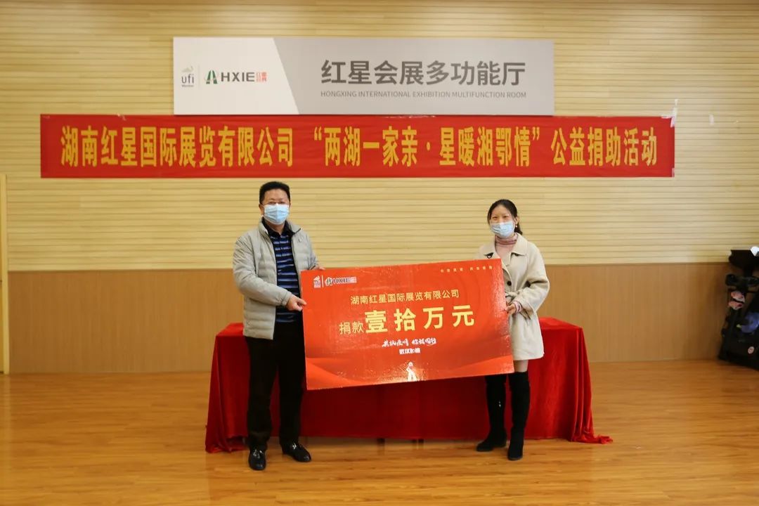 在(zai)活動現場(chang),紅星實業集團副(fu)總經理、湖(hu)南紅星國際(ji)展(zhan)覽有限公(gong)司總經理羅發明表(biao)示,湘(xiang)鄂(e)(e)一(yi)(yi)家親,共飲一(yi)(yi)湖(hu)水(shui),在(zai)一(yi)(yi)手(shou)抓(zhua)防(fang)疫,一(yi)(yi)手(shou)抓(zhua)復工,籌備各項(xiang)(xiang)會展(zhan)項(xiang)(xiang)目(mu)的同時(shi),更應該獻出(chu)一(yi)(yi)點愛心,向湖(hu)北人民及星城援鄂(e)(e)醫護人員(yuan)表(biao)達崇高的敬意和(he)心意,并率先代表(biao)紅星會展(zhan)向本次公(gong)益活動捐款10萬元。