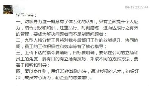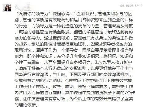 羅發(fa)明(ming)在(zai)(zai)分享總結中(zhong)(zhong)強調,這(zhe)是(shi)一(yi)堂(tang)教大家如何(he)做好一(yi)個領導(dao)者的課程,也是(shi)一(yi)門(men)高要求的課程,大家應該從不同角度、不同維度去理解(jie)領導(dao)力,并在(zai)(zai)日(ri)常工作(zuo)實(shi)踐中(zhong)(zhong)著力培養(yang)自身的領導(dao)能力。