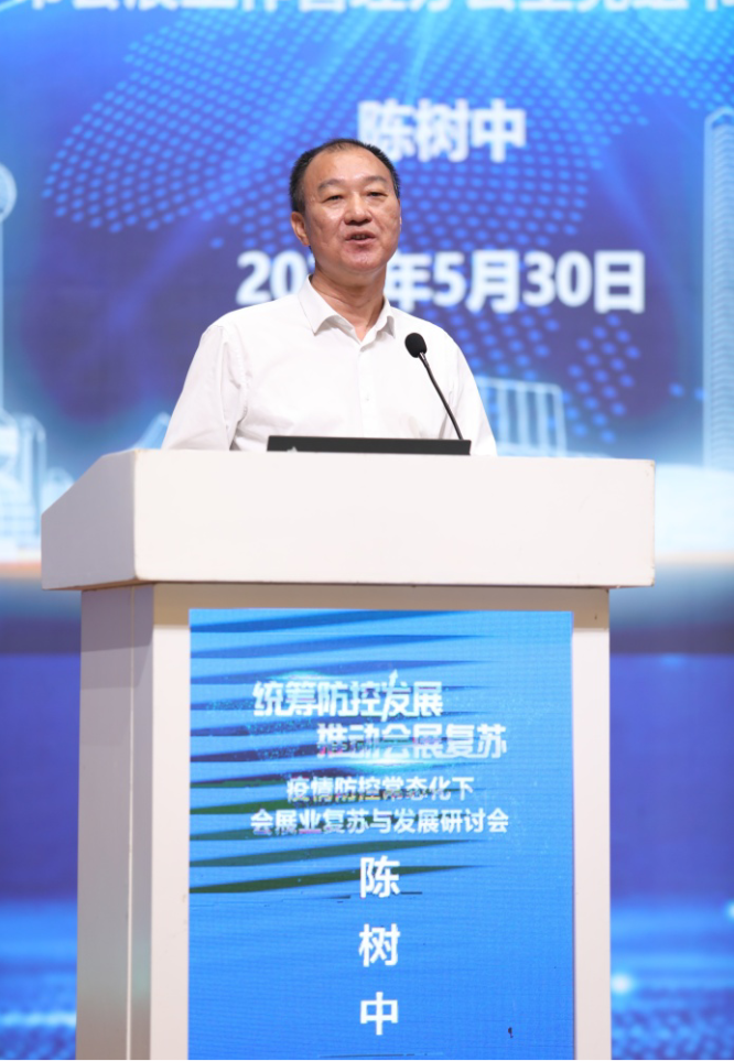 5月30日上午,陳樹(shu)中就地方政府如何在疫情防控(kong)常態化下推動(dong)會展業復(fu)蘇發(fa)揮作(zuo)用進行主題演(yan)講(jiang),分享長沙經驗(yan),為業界提(ti)供探索方向和(he)路徑。