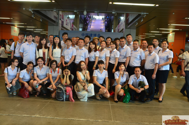 (公司(si)員工(gong)學習團在廣州(zhou)保利(li)世(shi)貿博覽館內合(he)影(ying))