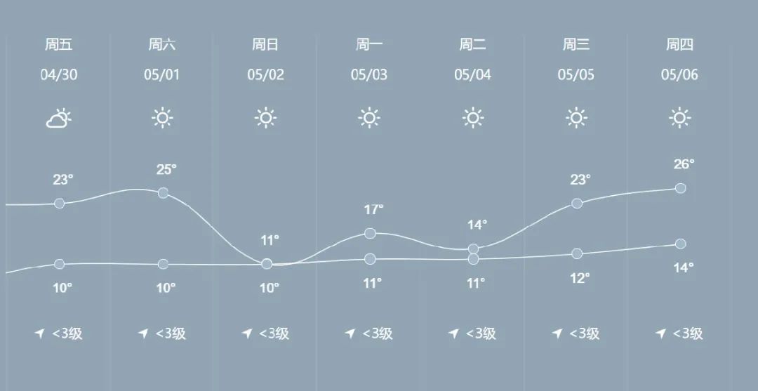 穿著(zhu)建(jian)議:白天氣溫較高,宜穿清涼(liang)透氣的(de)衣服;夜間(jian)降溫,需著(zhu)外套等保暖(nuan)衣物(wu)。