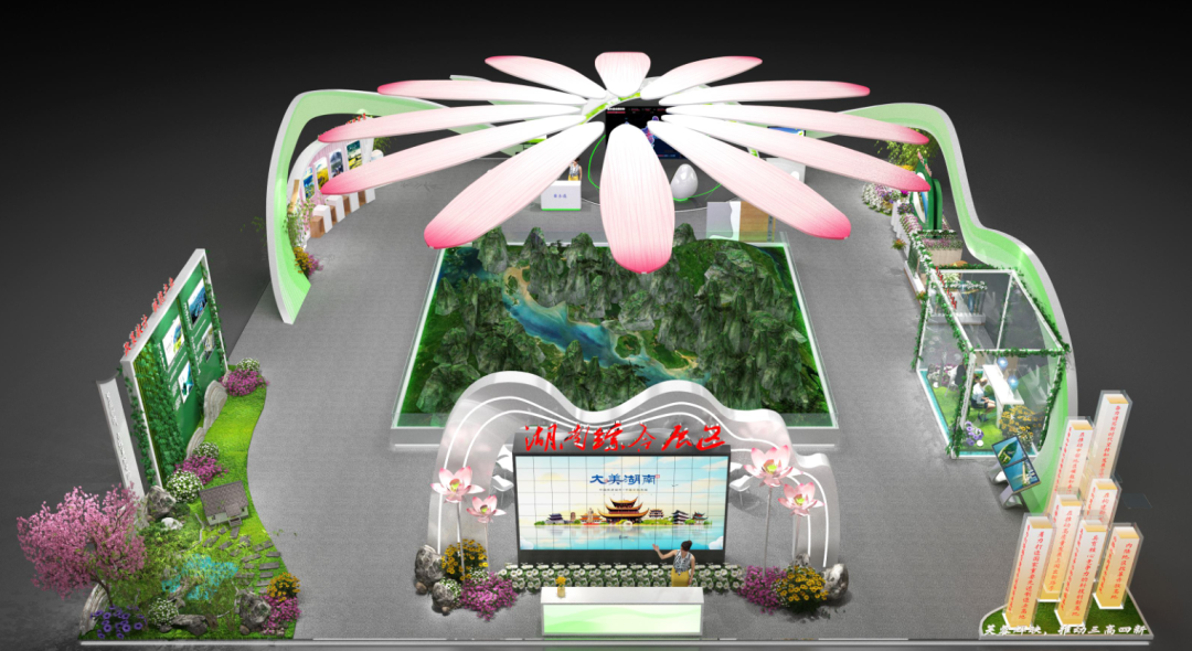 展(zhan)(zhan)區運(yun)用水墨基調,融(rong)入原木元素、雪峰山脈,桃花(hua)江畔,南洞庭風光(guang)等特點(dian),輔以花(hua)材花(hua)藝展(zhan)(zhan)示造景,打(da)造中(zhong)式底韻與(yu)現代(dai)時尚并存的展(zhan)(zhan)區,盡顯(xian)竹鄉益陽(yang)魅力(li)。