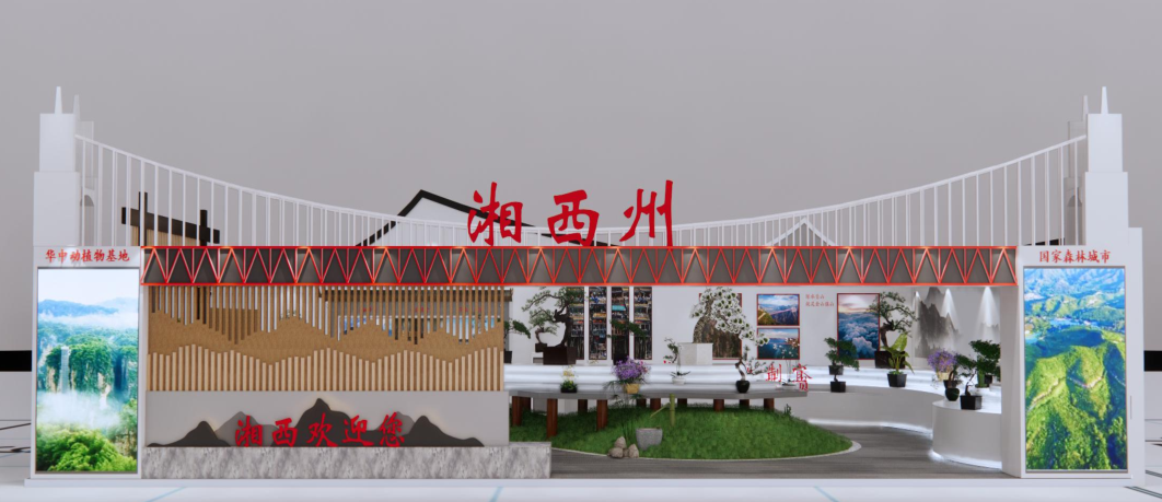 展區提(ti)取土家族(zu)、苗(miao)(miao)族(zu)的(de)自然及人文景觀(guan)遺(yi)跡,融合湘西(xi)少(shao)(shao)數(shu)民族(zu)西(xi)蘭(lan)卡普(pu)和苗(miao)(miao)繡、編制技藝等設計元(yuan)素(su),將(jiang)少(shao)(shao)數(shu)民族(zu)文化與苗(miao)(miao)木花卉融合在一起,展現(xian)少(shao)(shao)數(shu)民族(zu)的(de)魅力。