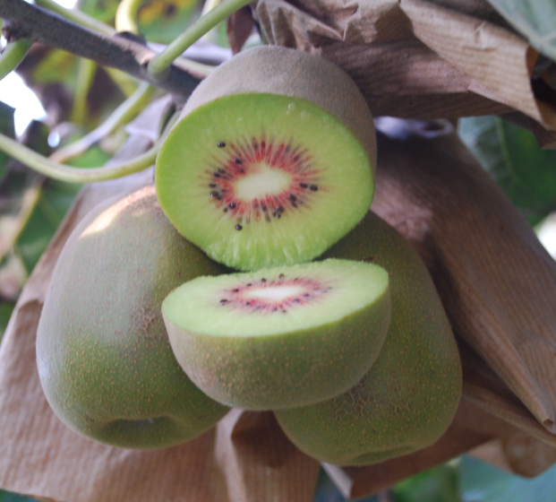 我果個中大(da),整齊美(mei)觀,果心橫截面呈放射狀紅色條(tiao)紋(wen),形似太陽,因此被人稱為“紅陽”。