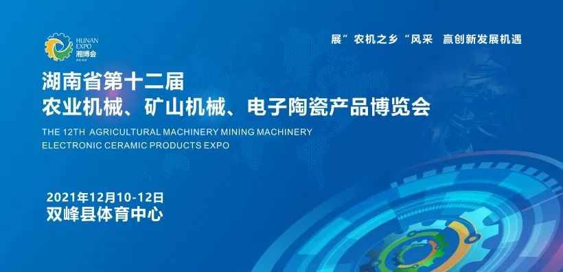 熱烈慶祝湖南省第(di)十二(er)屆農業機械、礦山機械、電子陶瓷產品博覽會即將開幕!