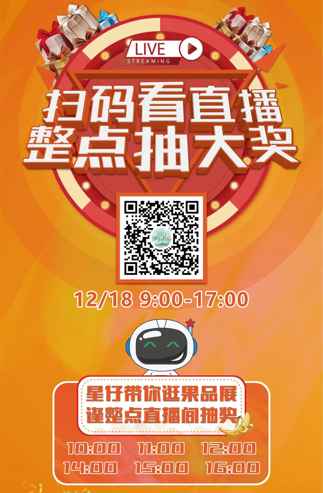 為做到(dao)真正的(de)讓利消(xiao)費者,本屆展會將(jiang)于(yu)12月18日9:00-17:00期間,開展“掃碼(ma)看直播,整點抽大(da)獎”帶貨(huo)活動(dong)!想(xiang)要足(zu)不(bu)出(chu)戶就品嘗到(dao)新(xin)鮮果品的(de)市民朋友(you),可掃碼(ma)進(jin)行關注,在線(xian)購買!