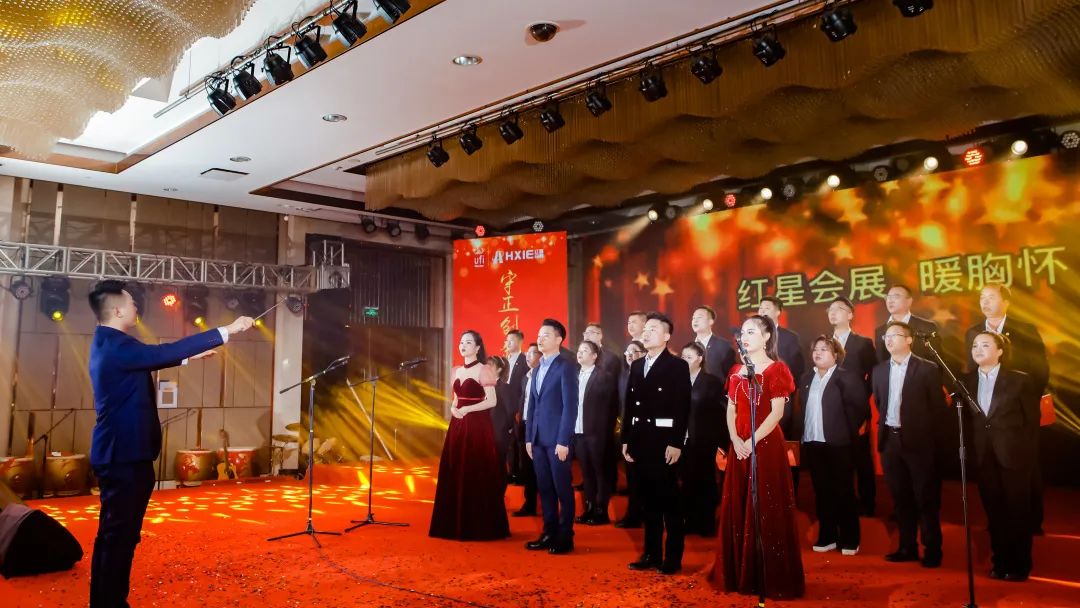 堅持初心使命恪守紅星精神堅持黨建引領精彩回顧金牛乘風去,猛虎咆哮(xiao)來(lai)。為感激(ji)全體員工在過去一(yi)年的辛勞與努(nu)力,1月(yue)27日(ri),湖南紅星國際展覽有限公(gong)司(以下簡稱紅星會(hui)展)2021年年終團(tuan)拜暨(ji)總結表彰大會(hui)在長沙融(rong)程(cheng)花(hua)園酒店舉行(xing),紅星實業集團(tuan)黨委書記、董事長羅躍,集團(tuan)董事會(hui)董事張衛強、李俊(jun)、袁丹,集團(tuan)黨委辦、總經(jing)辦、辦公(gong)室等(deng)領導出(chu)席本次表彰大會(hui)。集團(tuan)執行(xing)總經(jing)理(li)吳(wu)波代表集團(tuan)發(fa)表新(xin)春寄語并(bing)為獲獎(jiang)員工頒(ban)獎(jiang)。