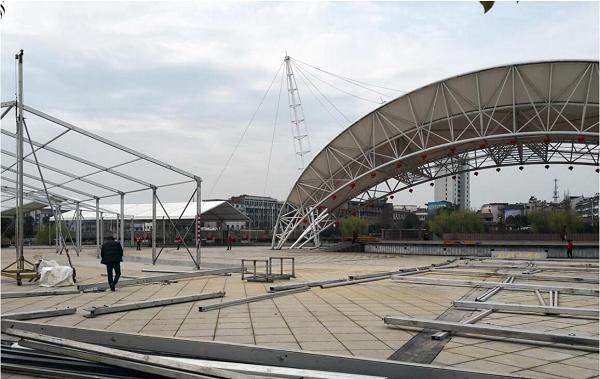 陽光正好的(de)這幾天大棚已經進入搭(da)建階(jie)段,一起(qi)看(kan)一看(kan)工(gong)人師傅(fu)們(men)在華容(rong)河廣場的(de)春光里緊張忙(mang)碌的(de)身影。