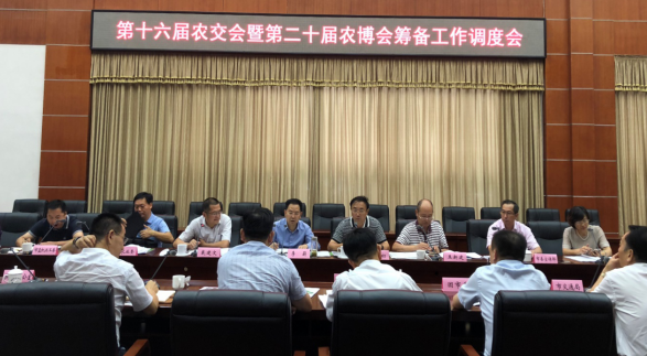 2018年9月10日,第十(shi)六(liu)屆中(zhong)國(guo)國(guo)際農(nong)產品交易會暨(ji)第二十(shi)屆中(zhong)國(guo)中(zhong)部(湖(hu)南)農(nong)業博覽會籌備工作調度會在市政府(fu)會議室(shi)召開。李蔚(yu)副(fu)市長聽取了展會工作匯報,對(dui)展會宣傳、觀(guan)眾組織,以及(ji)展館設(she)計等方案進行(xing)研究(jiu)。省農(nong)委總(zong)農(nong)藝師唐建(jian)初以及(ji)執行(xing)會辦公室(shi)有關成員(yuan)單位負責人和(he)負責場館內、外(wai)設(she)計的公司參會。會議由市政府(fu)戴建(jian)文副(fu)秘書長主持。