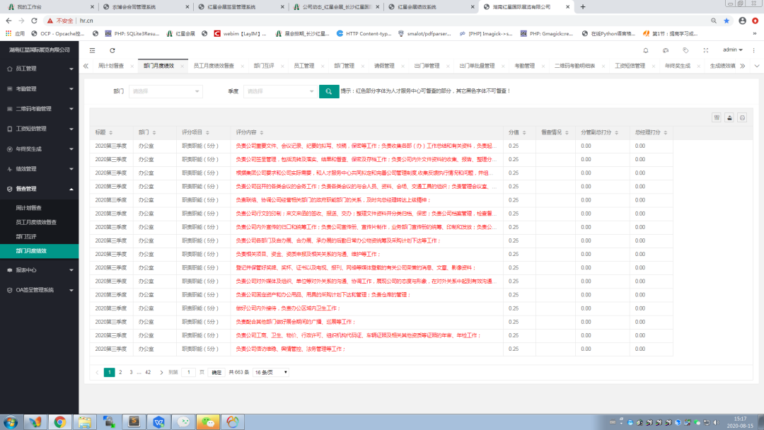 其(qi)中,紅(hong)星會展信息化管理(li)(li)系統(tong)是基于提高員工工作效率、進行內部(bu)工作統(tong)籌、實現部(bu)門(men)和員工績效統(tong)計等(deng)內容,涵(han)蓋合(he)同管理(li)(li)、預決(jue)算管理(li)(li)、簽呈督(du)(du)查(cha)(cha)、資(zi)產督(du)(du)查(cha)(cha)、部(bu)門(men)職(zhi)(zhi)責(ze)職(zhi)(zhi)能(neng)督(du)(du)查(cha)(cha)、安全(quan)生(sheng)產督(du)(du)查(cha)(cha)、員工職(zhi)(zhi)責(ze)職(zhi)(zhi)能(neng)考(kao)核、用餐登(deng)記、考(kao)勤打卡、會議(yi)督(du)(du)查(cha)(cha)、周計劃督(du)(du)查(cha)(cha)、部(bu)門(men)互(hu)評等(deng)功能(neng)模塊。