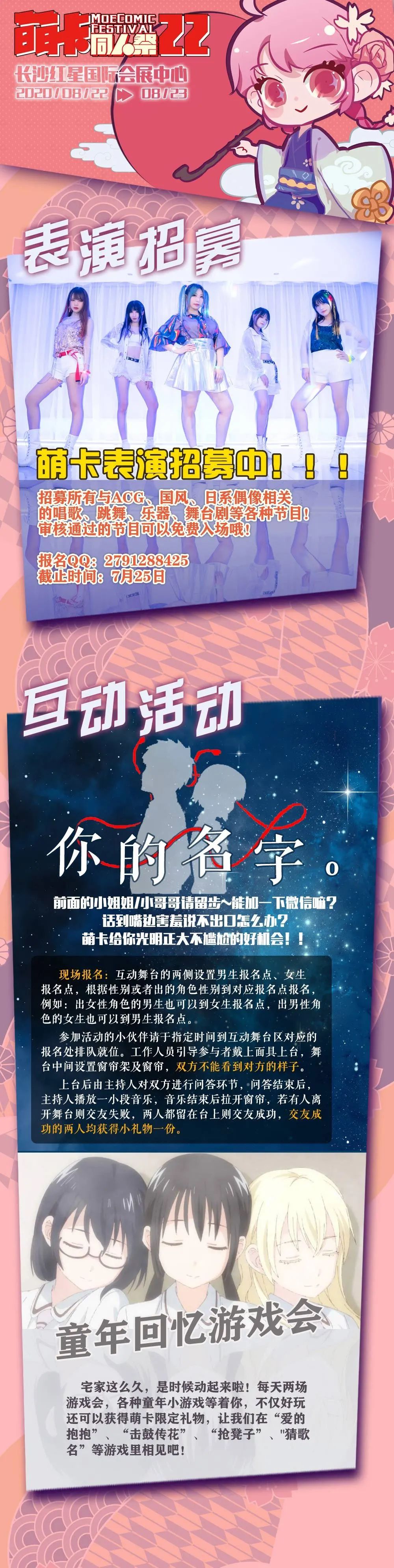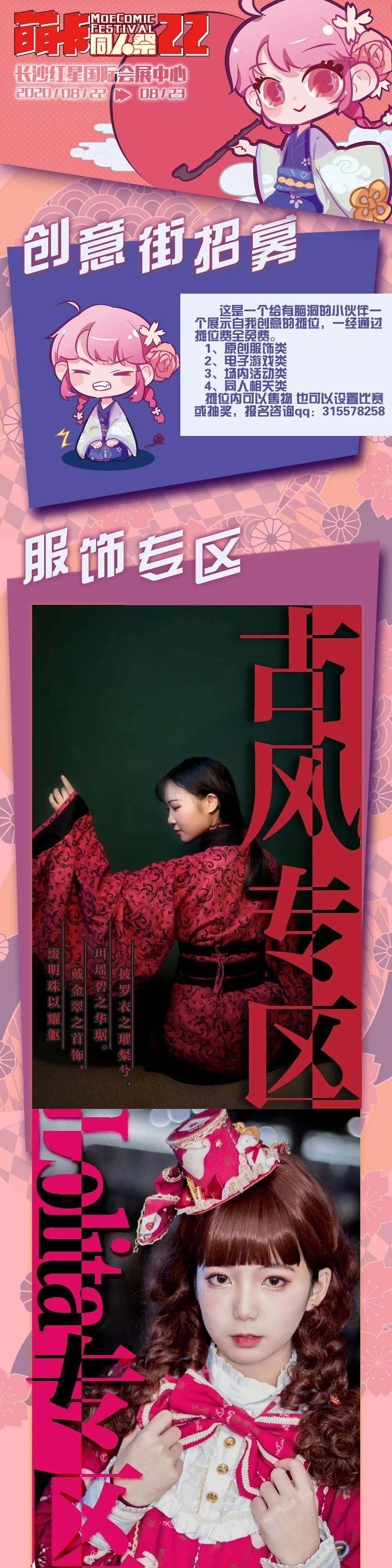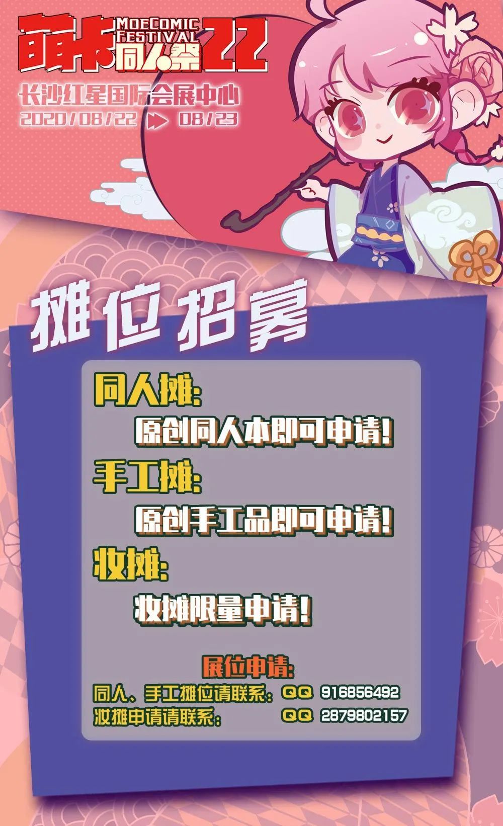 展(zhan)會期(qi)間,主(zhu)辦方將邀請來自省內各地級市的(de)動(dong)(dong)漫(man)(man)愛(ai)好者、國內各高校的(de)動(dong)(dong)漫(man)(man)社(she)團以(yi)及民間動(dong)(dong)漫(man)(man)愛(ai)好者,展(zhan)覽展(zhan)示(shi)動(dong)(dong)漫(man)(man)文化(hua)和(he)原(yuan)創作品(pin),推(tui)薦原(yuan)創動(dong)(dong)漫(man)(man)社(she)團,向眾多“漫(man)(man)迷”展(zhan)示(shi)長沙的(de)原(yuan)創力量(liang)。