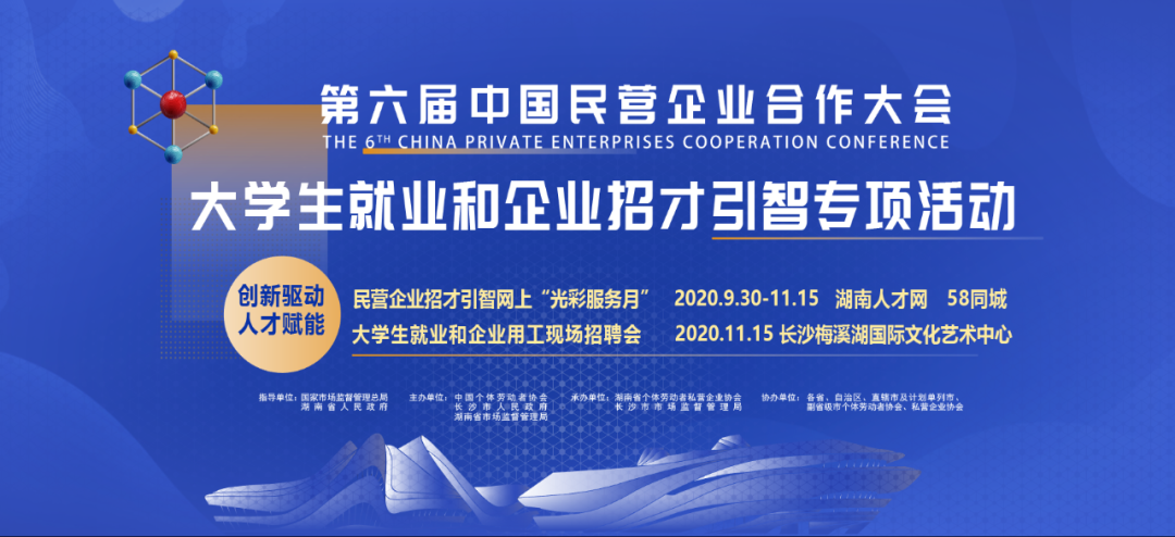 11月14日—15日,在(zai)長沙梅(mei)溪湖國(guo)際文化藝(yi)術中心,拉開(kai)帷(wei)幕(mu)的,第六(liu)屆(jie)中國(guo)民營企(qi)(qi)業(ye)合(he)作(zuo)大(da)會(hui)(hui)(以下簡稱(cheng)大(da)會(hui)(hui)),將吸引全國(guo)各(ge)地(di)650多家(jia)優質民營企(qi)(qi)業(ye)150多家(jia)創(chuang)新企(qi)(qi)業(ye)報名(ming)(ming)參(can)展,約(yue)1500名(ming)(ming)參(can)會(hui)(hui)嘉賓齊聚(ju)長沙共謀中國(guo)民營企(qi)(qi)業(ye)合(he)作(zuo)發(fa)展大(da)計。