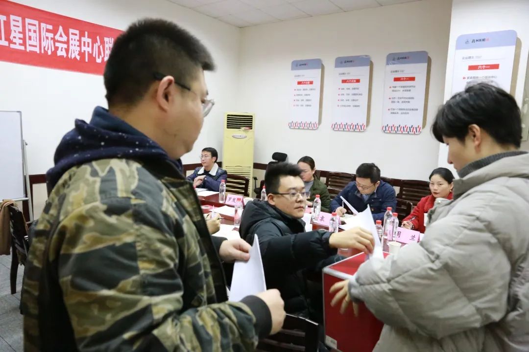 12月9日上午,中共長(chang)沙紅(hong)星國(guo)際會(hui)展中心聯(lian)合支部委員會(hui)黨員大(da)會(hui)在長(chang)沙紅(hong)星國(guo)際會(hui)展中心三(san)樓(lou)召開,由(you)集團黨委委員楊金(jin)花同(tong)(tong)志主持,通(tong)過民主選舉,袁(yuan)丹(dan)、周蘭、邱貴英三(san)位同(tong)(tong)志為支部委員,并上報上級黨組織(zhi)。