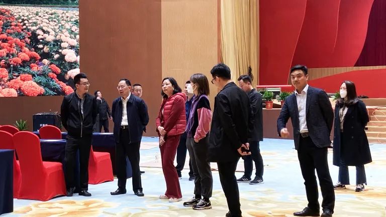 這(zhe)是一(yi)場與時(shi)間賽跑的工作,紅星會展(zhan)一(yi)邊調(diao)集人手根據大會氛圍對現場布置進行(xing)管控(kong),一(yi)邊安排對音響、燈光、屏幕等(deng)設施設備(bei)進行(xing)統一(yi)安裝與調(diao)試。