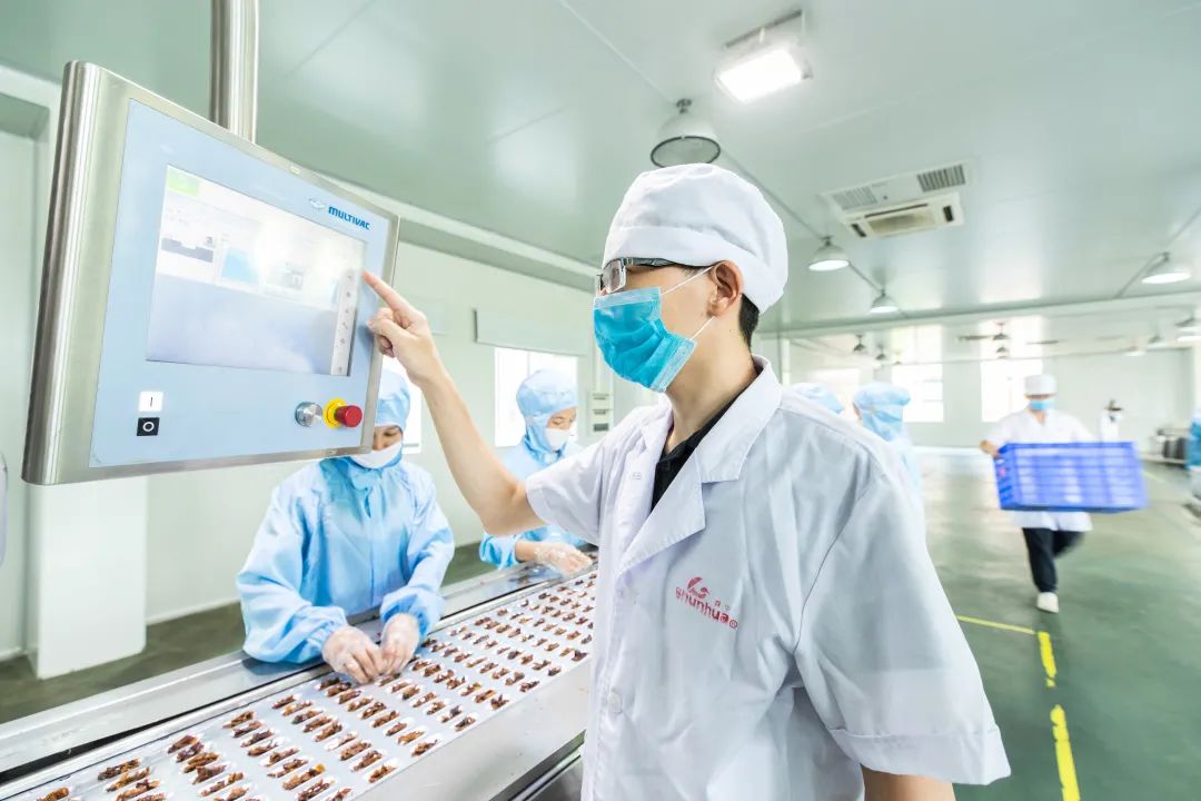 2021年十(shi)一(yi)小長(chang)假剛結束(shu),湖(hu)南(nan)臨武舜華(hua)鴨(ya)(ya)業(ye)(ye)(ye)發展(zhan)有限責(ze)任公司(si)(以下(xia)簡(jian)稱舜華(hua)鴨(ya)(ya)業(ye)(ye)(ye))就一(yi)片忙碌。在舜華(hua)鴨(ya)(ya)業(ye)(ye)(ye)包裝車間,工人們正(zheng)在加(jia)班加(jia)點打包臨武鴨(ya)(ya)休閑食(shi)品,這些產(chan)品在分(fen)批發往長(chang)沙、廣(guang)州(zhou)、上(shang)海、郴州(zhou)等地的同(tong)時,還要(yao)額外準(zhun)備(bei)(bei)風吹板鴨(ya)(ya)、冷鏈食(shi)品等貨源,提前為第二(er)十(shi)三屆中(zhong)國中(zhong)部(bu)(湖(hu)南(nan))農業(ye)(ye)(ye)博(bo)覽(lan)會(以下(xia)簡(jian)稱農博(bo)會)現(xian)場(chang)展(zhan)銷做(zuo)準(zhun)備(bei)(bei)。